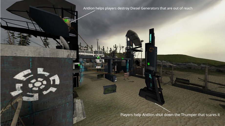 In the original Half-Life 2, Antlions could only help players eliminate enemies. In this level, I introduced more mechanics, reframing the Antlion as a more capable companion.​