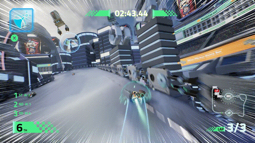 The track I designed is themed “Circuit.” To make the otherwise plain walls better reflect this theme, I created and implemented circuit board–style decals to decorate and enrich the environment.