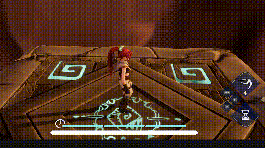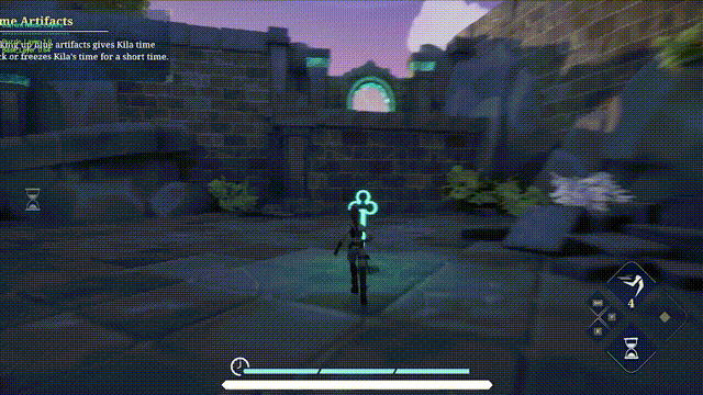 The rewind puzzle in Level 1 is designed to illustrate cause-and-effect relationships and introduce the core usage of the Rewind mechanic. In the example shown in the GIF, the player is blocked by a barrier gate that cannot be passed directly. In front of the gate sits an hourglass, which functions as a “lock,” while a key is placed a short distance away.