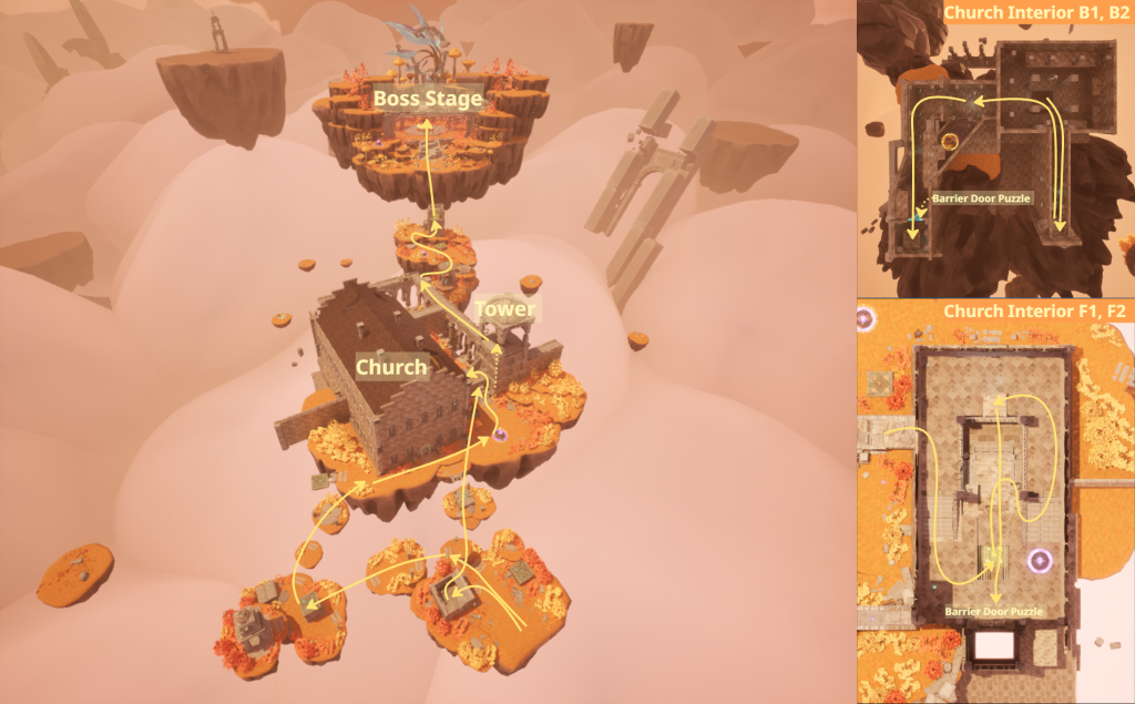 This element is mainly deployed along return paths, in high-vertical spaces, and as a geographic gate to shape navigation flow. It is used to better control player flow while preventing bad backtracking through intentional route design.