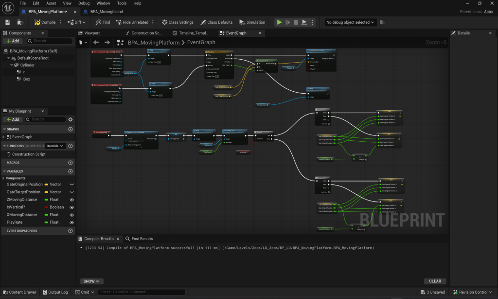 The moving platform is an interactive traversal element designed for rapid player movement, functioning similarly to an elevator. Its parameters are fully exposed in Blueprint, allowing vertical and horizontal movement with adjustable speed to support varied spatial layouts and pacing.