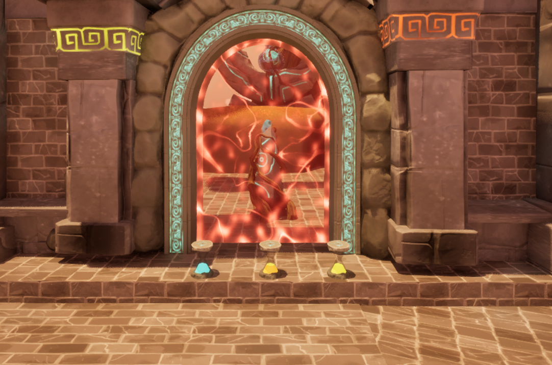 The rewind puzzle in Level 1 is designed to illustrate cause-and-effect relationships and introduce the core usage of the Rewind mechanic. In the example shown in the GIF, the player is blocked by a barrier gate that cannot be passed directly. In front of the gate sits an hourglass, which functions as a “lock,” while a key is placed a short distance away.