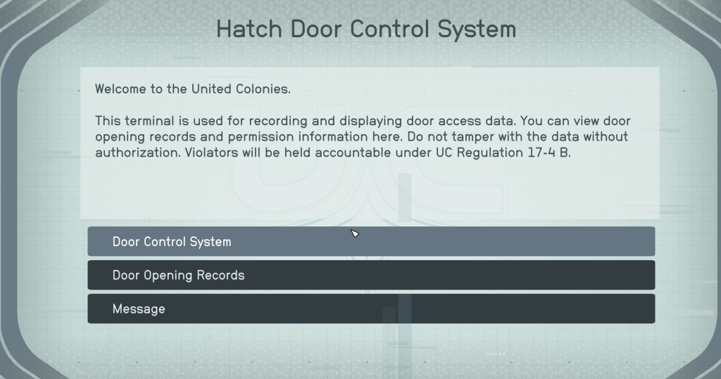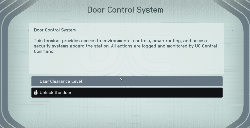I designed custom terminals aligned with the narrative, including bespoke text and sub-menus.
