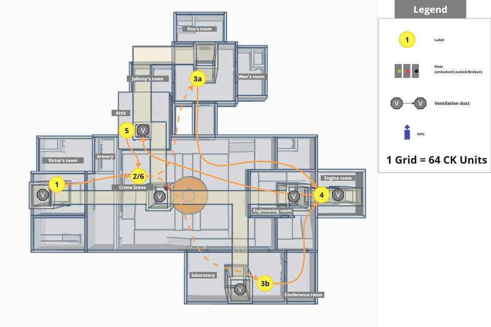 Players take on the role of a Constellation investigator, uncovering the truth behind the sudden death of a chief scientist, Roo. By exploring nonlinear pathways, interviewing suspects, and examining evidence, players gradually reconstruct the timeline of events and identify the killer.