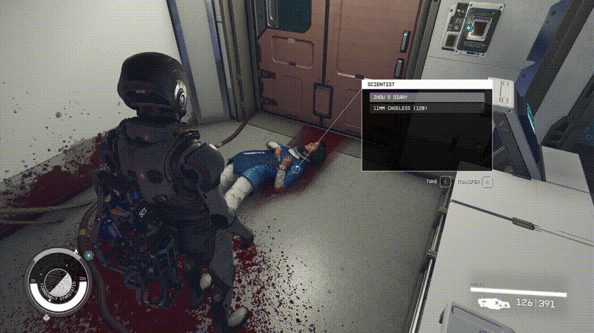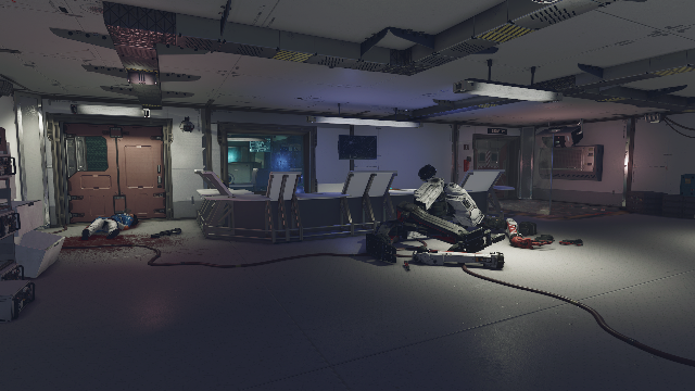 | 1 | The player enters the station, loots a key and a log from a corpse, unlocks the door, and enters the lobby. |