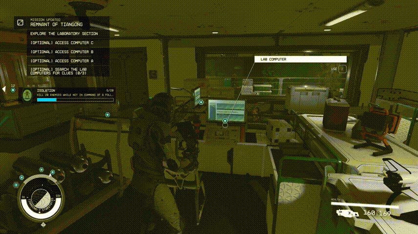 The level features layered environmental storytelling delivered through logs, terminals, and spatial clues scattered throughout the station. Instead of presenting the narrative directly, players gradually uncover the history of Tiangong-7 through exploration.