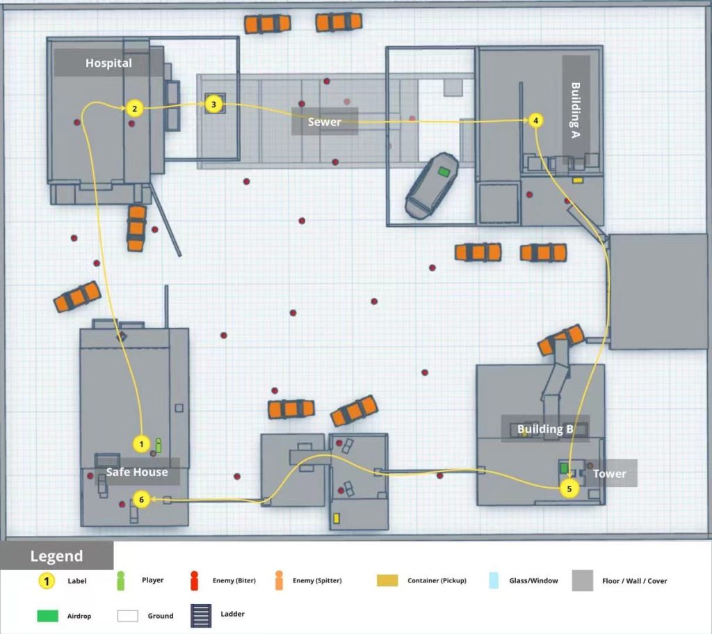 3 The player enters the sewer from the backyard of the hospital, following the sewer, the player reaches the first floor of Building A.